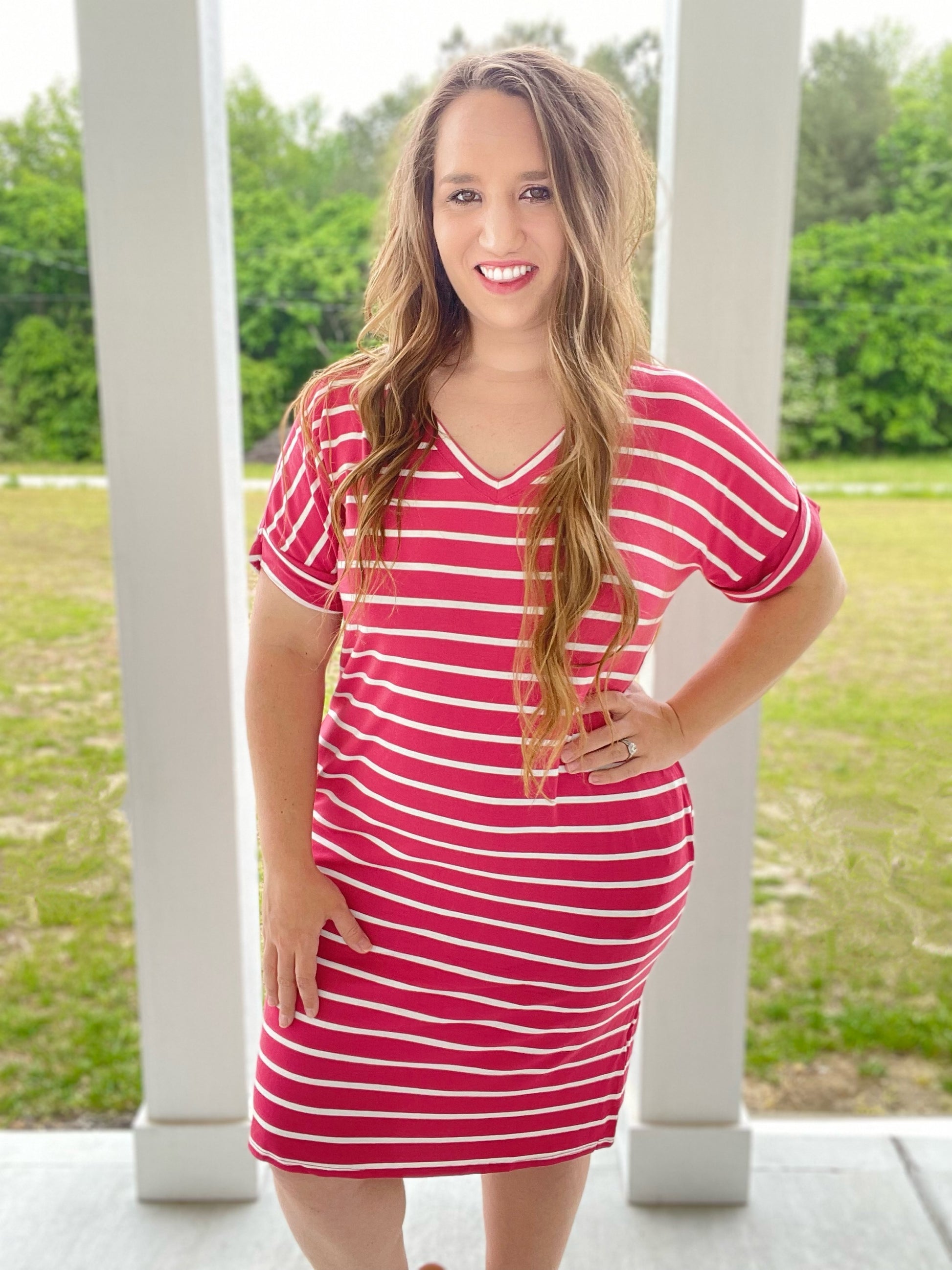 Dark Rose Striped Dress