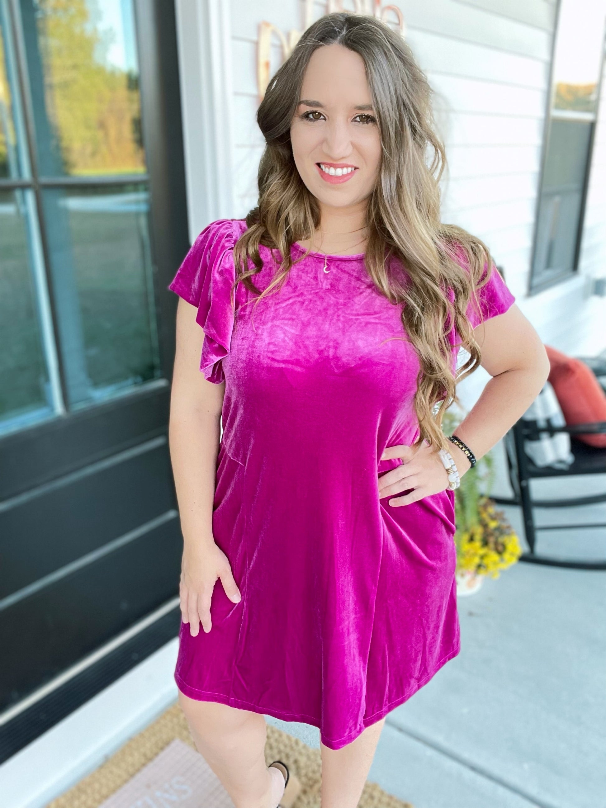 Lucy Magenta Velvet Dress